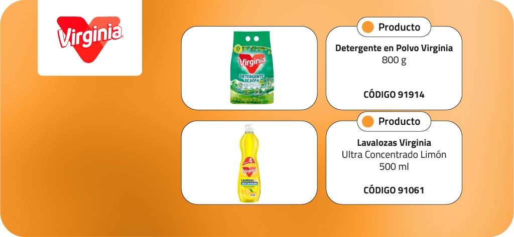 Virginia destaca por entregar soluciones funcionales, de uso cotidiano y fáciles de aplicar, siempre con un enfoque en la eficiencia y la buena relación precio-calidad. Los productos incluidos en esta pauta —lavalozas y detergente en polvo— representan categorías esenciales para cualquier hogar: