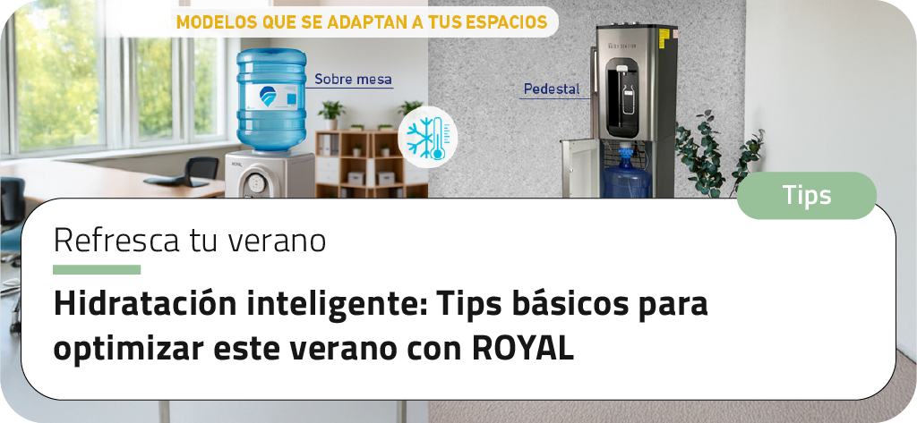 Es por ello que Royal ofrece dispensadores de agua, como una solución práctica, eficiente y adaptada a las necesidades del verano, ayudando a que más personas se mantengan hidratadas sin esfuerzo. Invertir en un dispensador de agua es invertir en salud, bienestar y calidad de vida. Es una alternativa confiable que acompaña el ritmo del día a día y garantiza una hidratación adecuada, permitiendo disfrutar del verano con mayor energía, seguridad y tranquilidad.